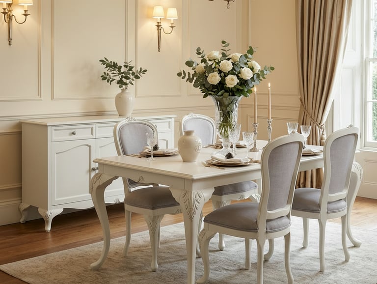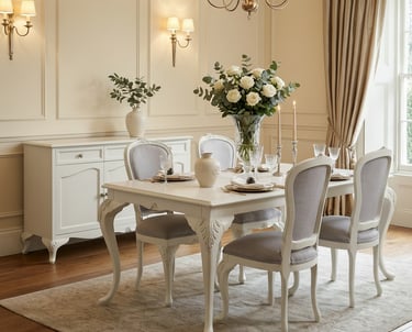 This bedroom set blends warm wood finishes with plush fabric upholstery, creating a welcoming and stylish retreat that invites relaxation after a long day.