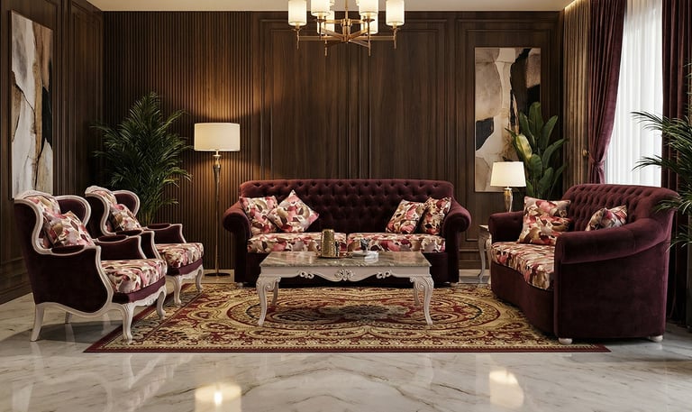 This sofa set features elegant beige upholstery paired with off-white wood finishes, creating a clean, modern urban chic look with a calm and sophisticated feel.