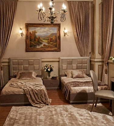 This kids’ room features clean lines and soft beige tones, accented with subtle details, creating a modern, stylish space with a calm and sophisticated urban feel.